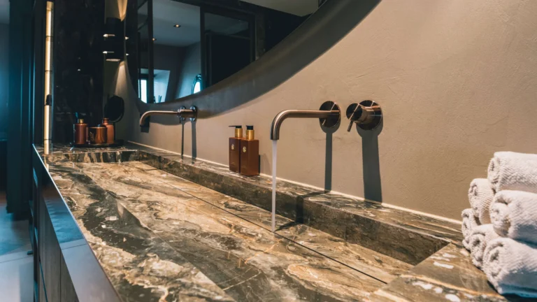 Sterke natuursteen wastafels die intensief gebruik aankunnen en toch een professionele uitstraling behouden.